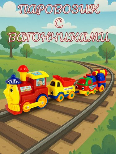 Поезд паравозик игрушка Игрушка «Паровозик с 3 вагончиками»