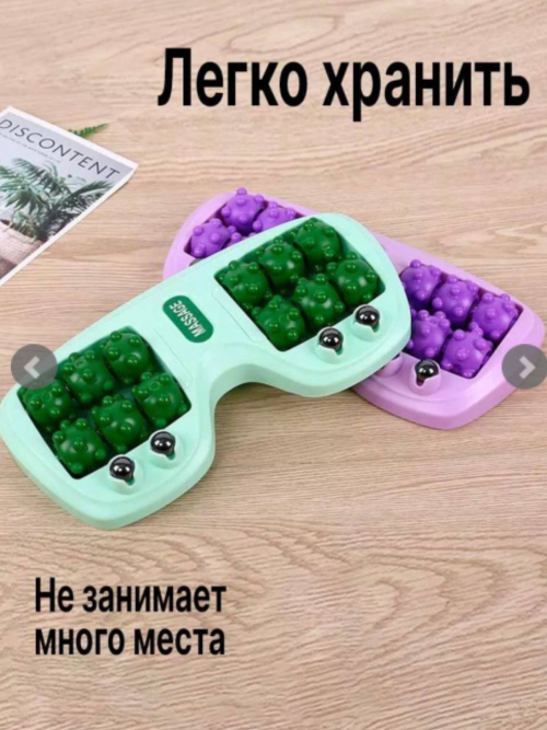 Роликовый Массажер для ног Роликовый массажер для ног и стоп. Масажер магнитный для ног используется для массажа стоп, улучшения кровообращения, снятия мышечного напряжения и усталости. Массажор с магнитами для стоп воздействует на разные участки ступни, массирует определенные зоны, что ведет к положительному воздействию на весь организм. Массажер зубчатый улучшает кровообращение, снимает усталость, предотвращает головные боли. Кроме того, массаж можно совмещать с нанесением кремов и мазей на подошвенную часть стопы. Антистатическое пластиковое покрытие позволяет производить более интенсивное массажное воздействие. Масажор для стоп в виде «счет». Это отличное и недорогое средство для снятия эмоционального напряжения, болей и усталости в ногах. Также массажер будет полезен для лечения и профилактики многих заболеваний. Особенности и преимущества: Качественные, гигиеничные и прочные материалы – пластмасса, резина и магниты; Прост в использовании;Широкая сфера применения;Возможен массаж обеих стоп одновременно; Встроенная магнитная терапия помогает при варикозе, профилактике плоскостопии, варусной и вальгусной деформации, пяточной шпоре, а также при реабилитации после травм. Удобно использовать при болях. Закажите прямо сейчас для взрослых и детей и ощутите разницу в своем самочувствии и здоровье.