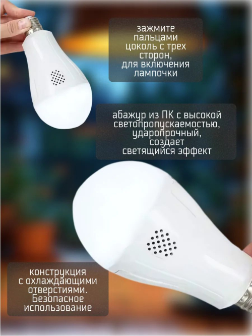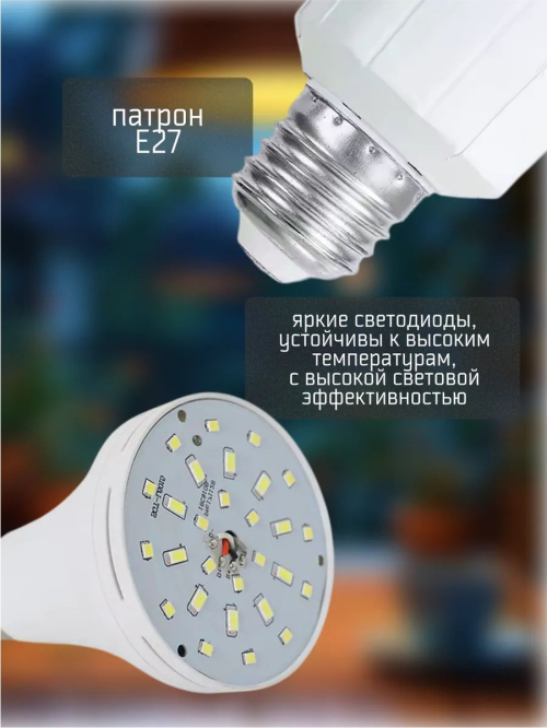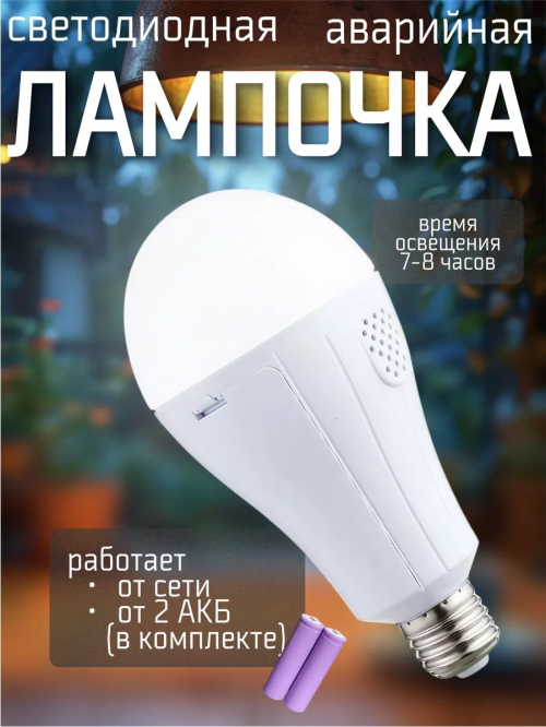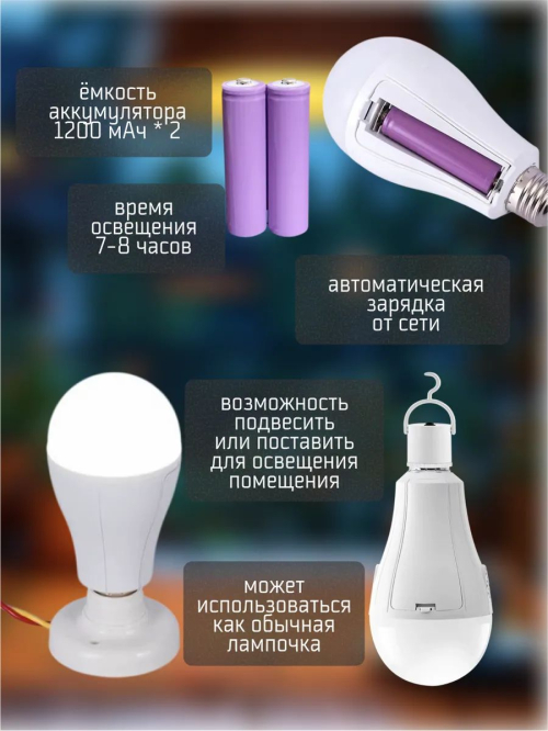 ✅ Стандартный цоколь E27 + 2 аккумулятора