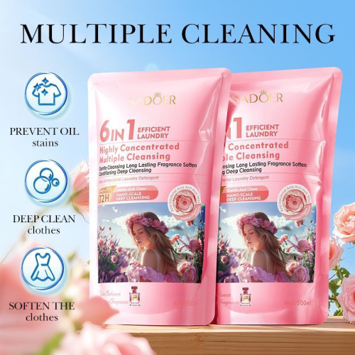 Жидкий порошок для одежды Парфюмированный концентрированное жидкое средство для стирки Sadoer 6-в-1 с ароматом камелии и антибактериальным эффектом.