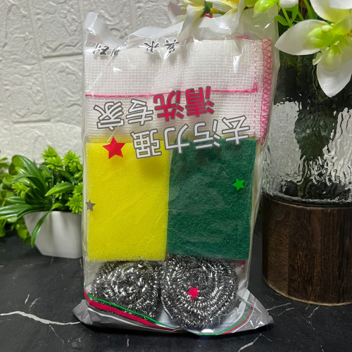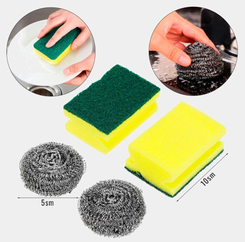 2 шт губка, 2 металлическая губка, тканевая Салфетка 1шт