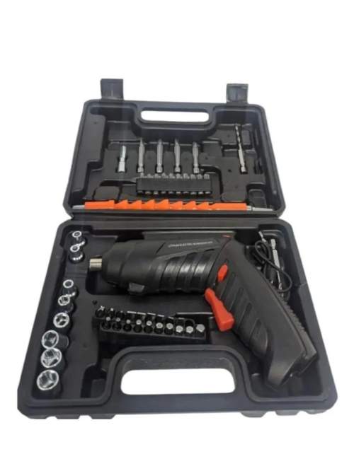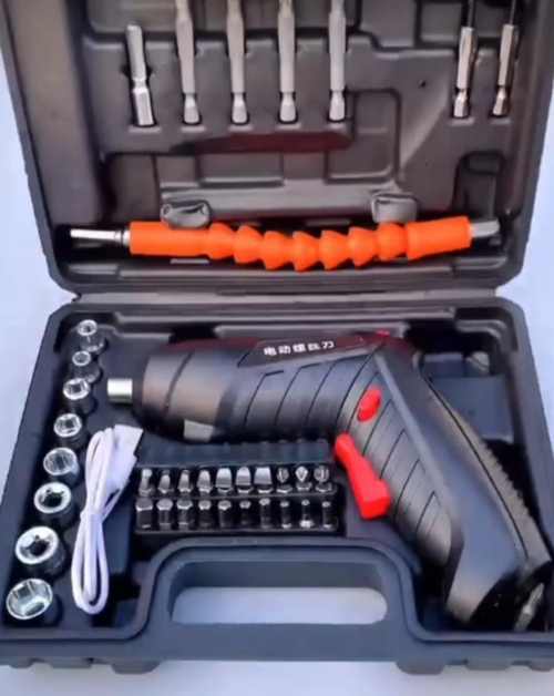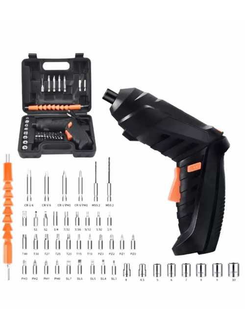 Аккумуляторная отвертка Аккумуляторная отвертка с насадками - это удобный и функциональный инструмент мини шуруповерт, который необходим в любом доме или мастерской. Комплект облегчит ремонтные работы и позволит выполнить множество задач с минимальными затратами времени и усилий. Набор аккумуляторного инструмента включает в себя не только отвертку, но и другие полезные биты, необходимые для выполнения различных задач. Вы сможете быстро и качественно справиться с любыми задачами. Реверсивная отвертка строительная имеет функцию изменения направления вращения, что позволяет быстро и удобно переключаться между заворачиванием и отворачиванием крепежных элементов. Это очень удобно и экономит время при работе. Аккумуляторная отвертка является незаменимым помощником на работе или дома. Универсальный инструмент поможет закрутить шурупы, гайки, саморезы, дюбель гвозди, болты и винты. Прибор поставляется в кейсе с набором бит и головок, а также гибкого вала, с помощью которого Вы с легкостью сможете закрутить крепеж в самых труднодоступных местах. Модель удобна при сборочных и монтажных работах, занимает мало места при хранении и может быть всегда под рукой. Трансформируемая конструкция и небольшой вес позволяют с удобством работать "на весу" в горизонтальном и вертикальном положении. Эргономичная рукоятка с прорезиненной вставкой на основной рукоятке обеспечивают удобство и комфорт при работе. У электроотвертки есть фонарик, благодаря которому можно комфортно работать даже в полной темноте. Немаловажным преимуществом является аккумулятор повышенной емкости, ведь вы сможете взять с собой отвертку куда угодно, а зарядить прибор можно кабелем USB, поставляющимся в комплекте.