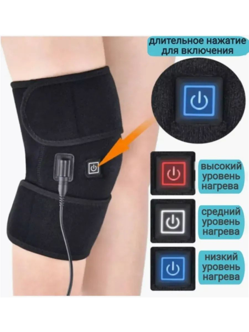 Использование: Наколенник крепится на колено с помощью регулируемых ремней. Устройство включается, и можно выбрать желаемый режим и температуру.