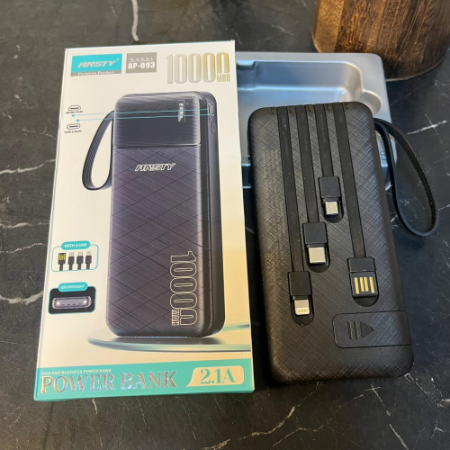 Ansty поуэр банк 10000мАч Внешний аккумулятор Ansty AP-093 — это портативное зарядное устройство с емкостью 10000 мА·ч, предназначенное для зарядки мобильных устройств. Модель имеет встроенные кабели с разъемами Micro USB и Type-C, а также оснащена светодиодным фонариком с 4 светодиодами и индикатором заряда.