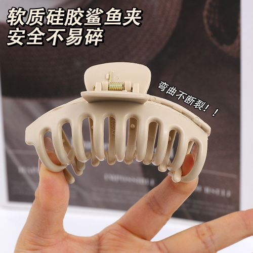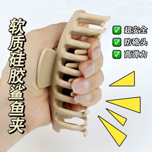 Краб для волос из мягкого силикона — это заколка-краб, изготовленная из гибкого и прочного материала, который обеспечивает хорошую фиксацию прически без повреждения волос. Описание на изображении указывает, что заколка сделана из мягкого силикона, обладает высокой эластичностью, хорошей упругостью и не ломается при изгибании. Подобные заколки также называют "гнущийся краб".