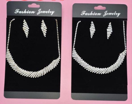 комплект бижутерии, состоящий из ожерелья и серег с прозрачными стразами.
