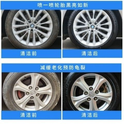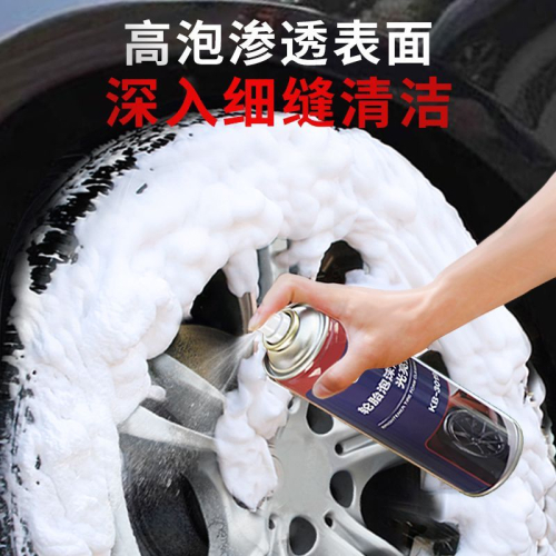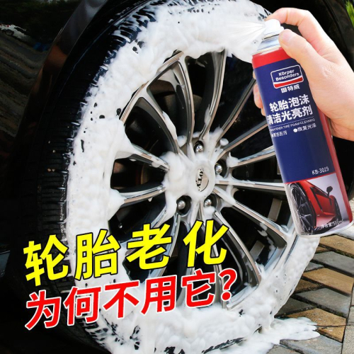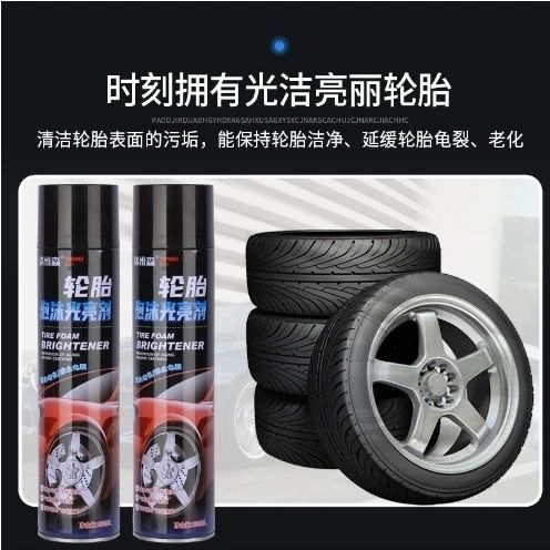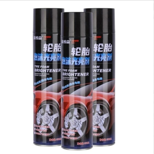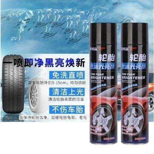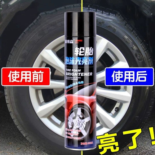 Блеск для шин Автомобильный очиститель баллончик с пенным очистителем и полиролем для шин под названием Tuwei Tire Foam Brightener.
