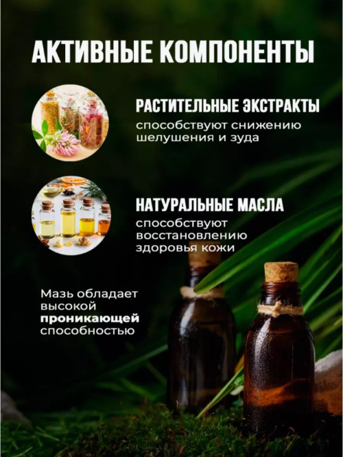 Мазь используется для лечения кожных заболеваний, таких как псориаз, экзема, и для снятия зуда от укусов насекомых.