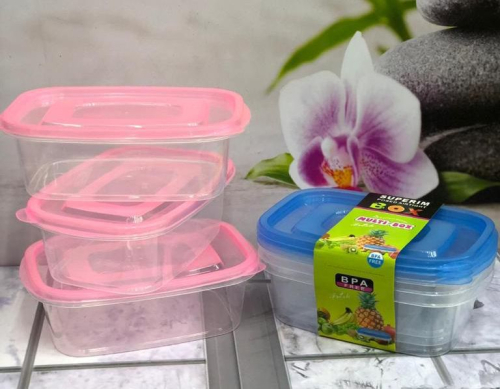 пластиковые контейнеры для еды с крышками. На одном из них есть этикетка с надписью "SUPERIM BOX MULTI-BOX" и пометкой "BPA FREE".