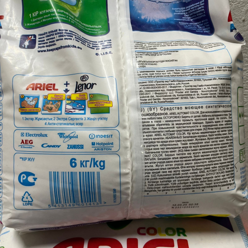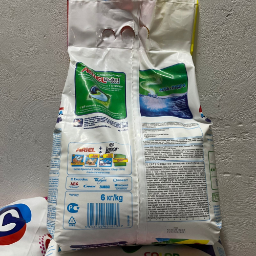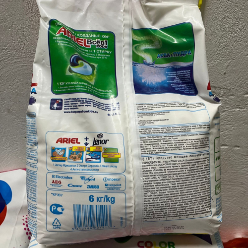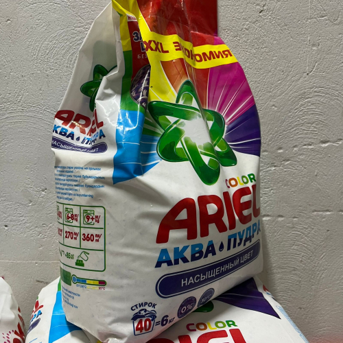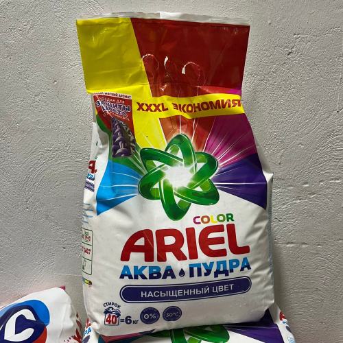 порошок Ariel Color «Аква-пудра» в упаковке весом 6 кг.