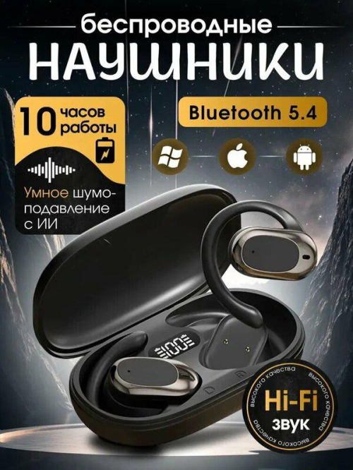 Наушники беспроводные спортивные без вакуумных амбушюр с регулируемым заушным креплением