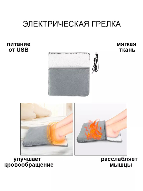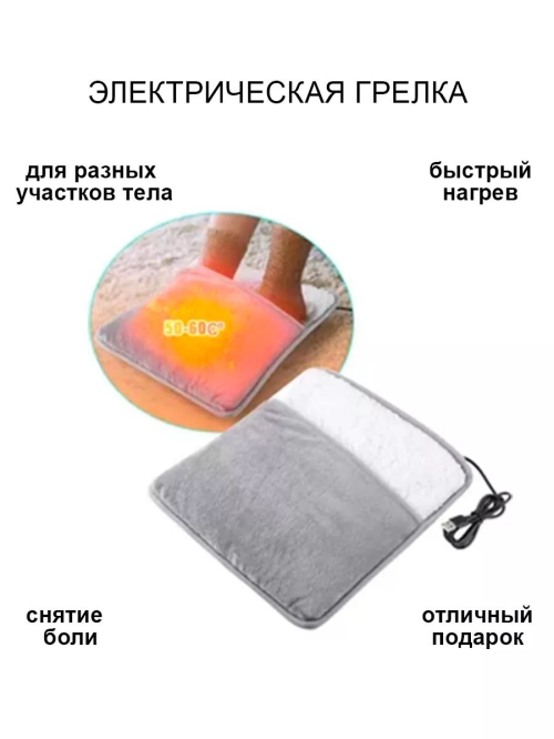 Электрогрелка 32*32см Электрическая грелка для ног - это удобное устройство, которое поможет вам согреть ноги в холодные дни. Она подключается через USB-порт к любому источнику питания, что делает ее очень удобной в использовании. Грелка обеспечивает равномерное и комфортное тепло, согревая ноги после долгой прогулки или работы. Компактные размеры позволяют взять ее с собой в поездку или на работу. Бережно ухаживает за кожей ног, улучшает кровообращение. Наслаждайтесь теплом и комфортом в любое время благодаря этой электрической грелке для ног! Грелка электрическая - это отличное средство для улучшения вашего здоровья и благополучия в холодное время года. Она способствует расслаблению мышц, снятию боли и улучшению кровообращения. Также она прекрасно подходит для людей, которые страдают от хронической боль в суставах. Характеристики: Размеры изделия: 29х29х2,5 см, Питание: USB, Температура нагрева: до 50-60 градусов, Вес нетто: 142 г, Длина провода USB: 1,2 м.