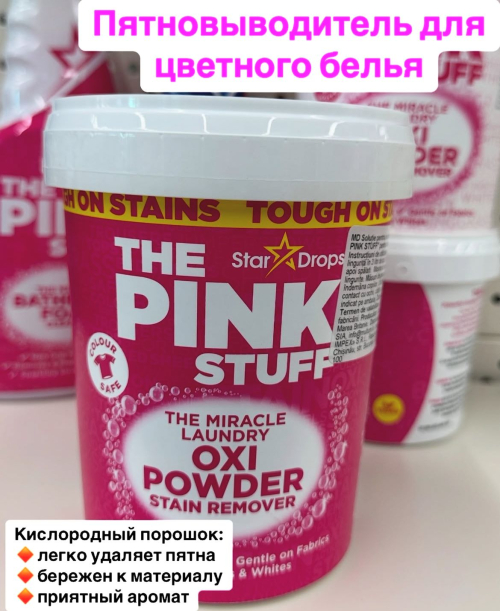 Порошок для удаления пятен The Pink Stuff это порошковый пятновыводитель The Pink Stuff The Miracle Laundry Oxi Powder Stain Remover.