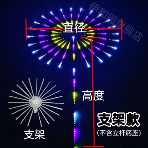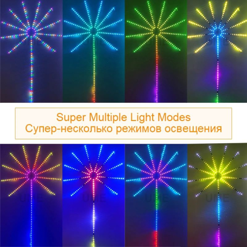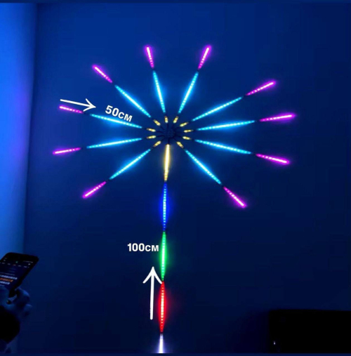 Умная светодиодная гирлянда - фейерверк демонстрирует светодиодную гирлянду в форме фейерверка с указанием размеров.