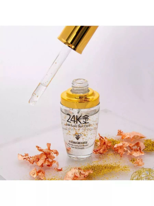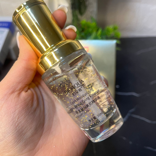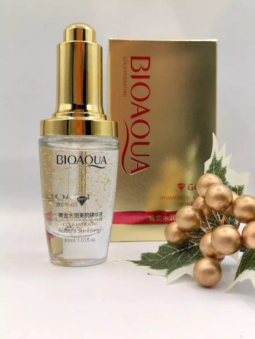 Сыворотка для лица с частицами золота эссенция для лица Bioaqua 24K Gold Moisturizing Beautifying Essence. Это инновационное средство, обогащенное частицами 24-каратного золота и гиалуроновой кислотой, предназначенное для увлажнения и омоложения кожи.