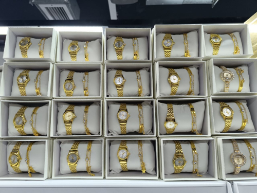 Внешний вид: Все часы имеют круглый циферблат и металлический браслет золотистого цвета, некоторые модели дополнены цепочкой-браслетом.