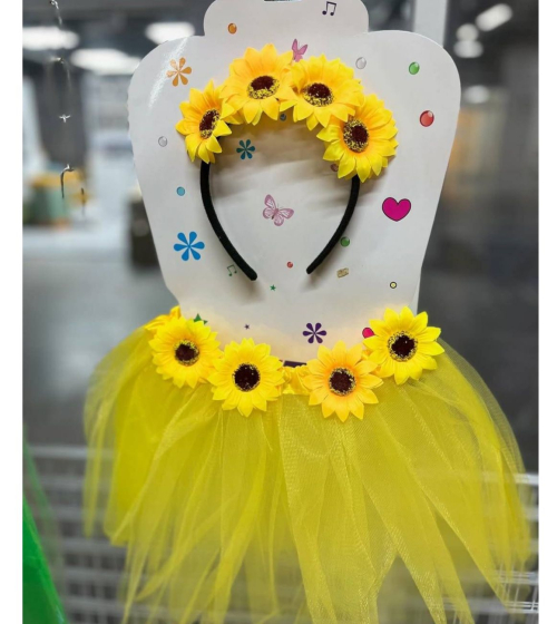 Это желтый детский костюм с подсолнухами, состоящий из юбки-пачки и повязки на голову + 1 невидимка