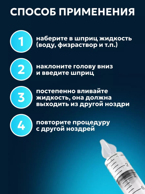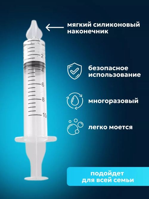 Шприц для промывания носа Идеальное решение для эффективной и безопасной промывки носовых ходов. Ирригатор назальный надежное и удобное средство, рекомендованное лорами и предназначенное для освобождения пазух от соплей насморка загрязнений, включая слизь, пыль и аллергены. Для максимального комфорта мы включили в комплект силиконовую насадку, которая идеально подходит для промывания носа не только у взрослых, детей и подростков, но и у новорожденных малышей с 4-х месяцев. Наш шприц для промывания работает на основе принципа гидравлического давления, обеспечивая эффективное промывание. Благодаря возможности регулировать напор подачи лекарства с помощью силы нажатия на поршень, вы имеете полный контроль над процессом. Просто используйте солевой раствор физраствор Аквалор Аквамарис, чтобы тщательно промыть и очистить носовые пазухи. Вы также можете использовать его вместе с электрическим или ручным соплеотсосом и аспиратором. Шприцы в контейнере компактно помещаются в сумку и легко превращаются в портативный, дорожный механический ирригатор для промывания. Набор для очистки и обеспечения себе и своим близким чистоту, свежесть и комфорт. Это надежное устройство идеально подходит для домашнего использования.