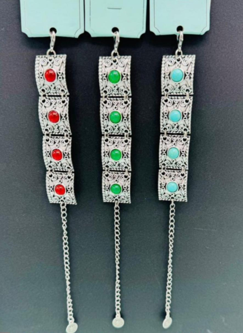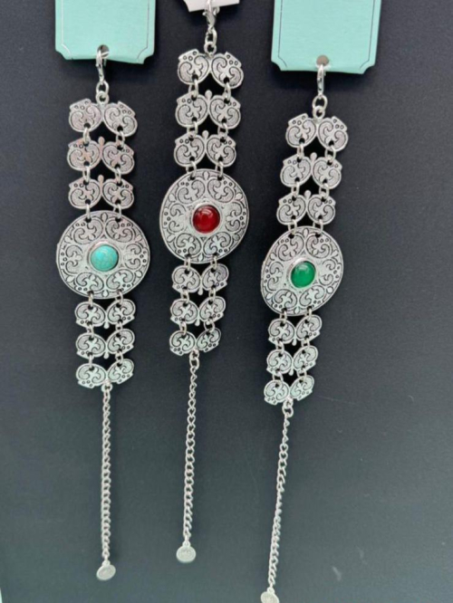 Это казахский национальный браслет в серебристом цвете с красными и бирюзовыми вставками
