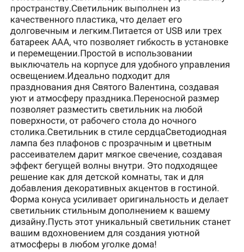 Назначение: Декоративный светильник, сувенир.