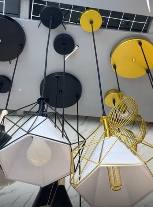 MSK Electric Camelia (или аналогичные лофт-светильники): Светильники с сетчатыми плафонами, которые отлично подходят для индустриальных интерьеров.