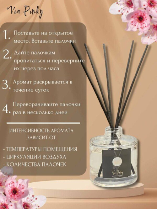 Арома диффузор бренда Via Pinky Ароматический диффузор Via Pinky - это идеальный выбор для тех, кто хочет создать уютную атмосферу в своем доме или офисе. Этот диффузор обладает стойким ароматом, который будет долго сохраняться в помещении. Стильный флакон диффузора из толстого прозрачного стекла идеально впишется в любой интерьер, а его аромат на долгое время поселится в пространстве комнаты.
