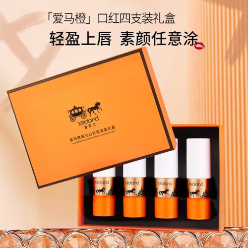 Набор Подарочных губных помад подарочный набор губных помад бренда XRoland (萱罗兰) под названием «Love Horse Orange Matte Lipstick Four Pack Gift Box».