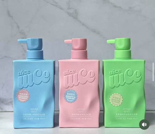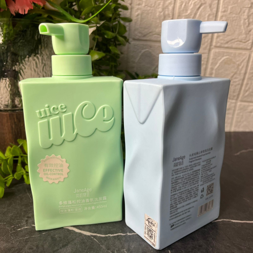 Шампунь JaneAge косметические средства бренда Janeage, выполненные в дизайне, напоминающем упаковки сока.