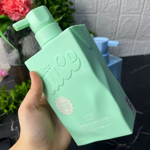 Особенности: Флаконы имеют необычную «смятую» форму и оснащены дозатором-помпой. Объем одного флакона составляет 450 мл.