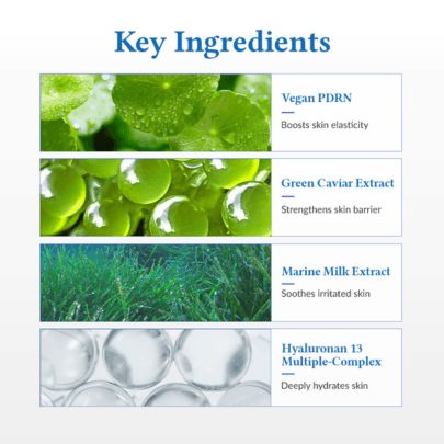 Гиалуроновая кислота (8 видов): Комплекс из восьми видов гиалуроновой кислоты с разной молекулярной массой обеспечивает многоуровневое увлажнение. Она притягивает и удерживает влагу как на поверхности, так и в глубоких слоях кожи, предотвращая обезвоживание и разглаживая мелкие морщинки.