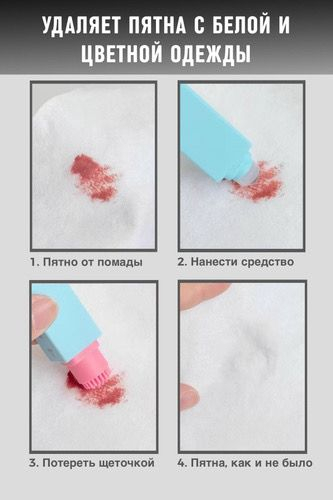 Использование: Применяется непосредственно на пятне без необходимости стирки.