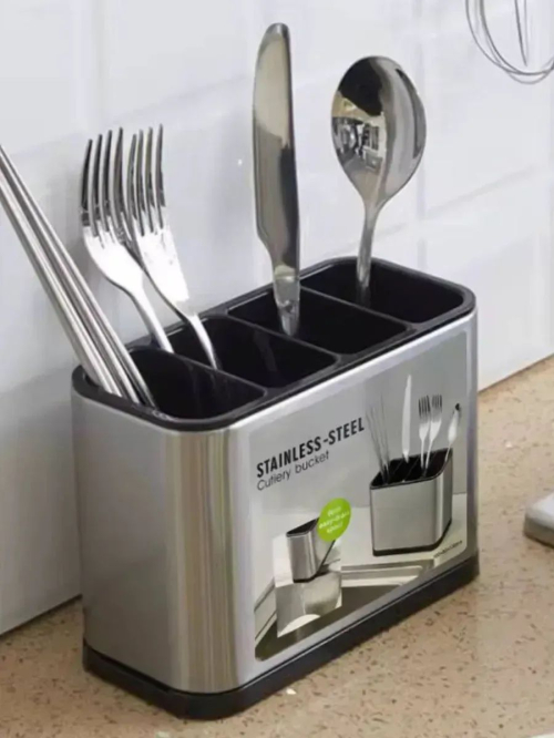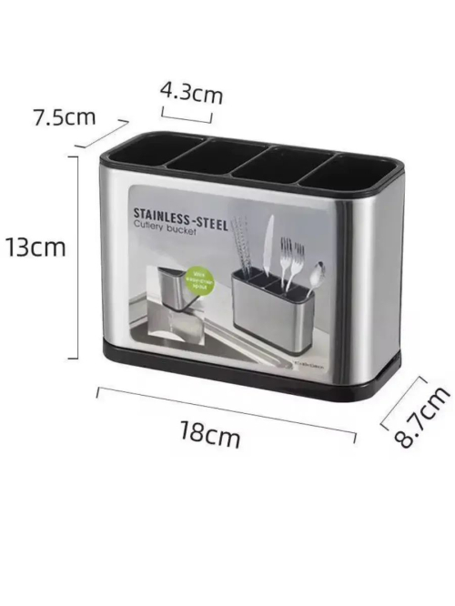 Оргонайзер подставка Сталь Подставка для столовых приборов настольная металлическая с поддоном на кухню, выполненная из прочного ABS-пластика и высококачественной нержавеющей стали, предназначена для размещения и хранения вилок, ложек, ножей и других кухонных принадлежностей до полного высыхания. Имеет компактные форму и габариты. Органайзер для хранения совмещает функции подставки и сушилки после мойки. Используется в настольном варианте - её можно разместить непосредственно на раковине, столешнице, а также на полке в кухонном шкафу. Качественный пищевой пластик (ABS-пластик), из которого изготовлены вставки, обладает повышенной износостойкостью. Этот материал сохраняет свою прочность и долговечность под воздействием высоких температур и повышенной влажности. Он также устойчив к растрескиванию, размножению микробов и бактерий. Стакан лоток для кухни полностью разборный, что позволяет с лёгкостью его мыть и очищать от загрязнений. Перфорированное дно сушилки обеспечивает вентиляцию находящихся в нем предметов и сбор жидкости в нижней части, которая затем легко удаляется через специальное отверстие. Нескользящие ножки обеспечивают хорошую устойчивость на любой поверхности. При достаточно компактных размерах, для сортировки различного вида принадлежностей, предусмотрено 4 секции, что позволяет организовать комфортное расположение в достаточном количестве предметов разных размеров. Стильный лаконичный дизайн хром идеально дополнит интерьер, увеличит свободное пространство и будет служить долгое время.