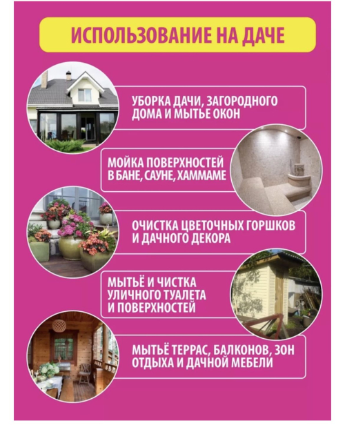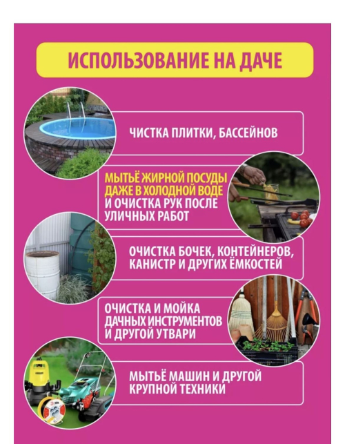 Особенности: Безопасен для экологии, но требует осторожности при использовании на чувствительных поверхностях из-за абразивов.