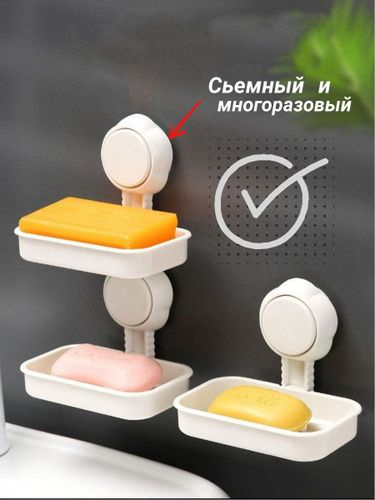 Мыльница на присоске Настенная мыльница станет стильным аксессуаром для вашего дома. Она сэкономит пространство на кухне, в ванной комнате или душе, освободив рабочие поверхности на мебели. Используйте подвесную полку для хранения мыла, губки или других кухонных принадлежностей. Стильная полочка подойдет и в качестве подставки для любого диффузора. Классический дизайн и нейтральный белый цвет органично впишутся в любой интерьер. Мыльница для ванной будет отлично сочетаться с мебелью. Подставка изготовлена из качественного и безопасного пластика. Он не обладает неприятным запахом, в комнате будет пахнуть только свежестью вашего мыла. Такой материал долговечен в использовании и легко очищается водой. Проста и удобна в использовании, быстро устанавливается. Держатель для мыла прочно прикрепляется на любую гладкую поверхность с помощью присоски. Вам не понадобится портить поверхность сверлением для ее установки. Просто прижмите самоклеящуюся липучку к нужному месту и подержите секунду. Органайзер на присоске имеет вставную коробочку со сплошным дном и полочку мыльницы со сливом. Просто снимите коробочку, тогда сквозь сетчатое дно в изделии лишняя жидкость будет сразу стекать. Так мыло не будет раскисать и не потеряет форму, а губка останется сухой. Стильный гаджет для кухни и ванной – отличный подарок на новоселье родным и друзьям или приятной мелочью для подарка без повода. В нашем магазине большой ассортимент товаром для дома и кухни из Китая. В туалетные принадлежности (предметы для дома) входят комплекты для ванной комнаты, можно собрать набор мыльница и стакан. Данные товары для дома и дачи, крепление на стену осуществляют с помощью вакуумной присоски для плитки и идеально подойдут тем, кто недавно сделал свежий ремонт дома, в квартире. Белые присоски для крепления имеют крепеж - липучку для крепления и могут использоваться как подставка под губку для посуды, полочка в ванну, подставка под мыло, подставка для губки в раковину, ванночка для губки, мыльница детская. Крепление без сверления (без дрели) не испортит кафель и позволит разместить мыльницу как полочка для душевой кабины, на раковину для губки, мыльница на ванну. Данный товар обеспечит Вам порядок на кухне, в ванной и туалете.