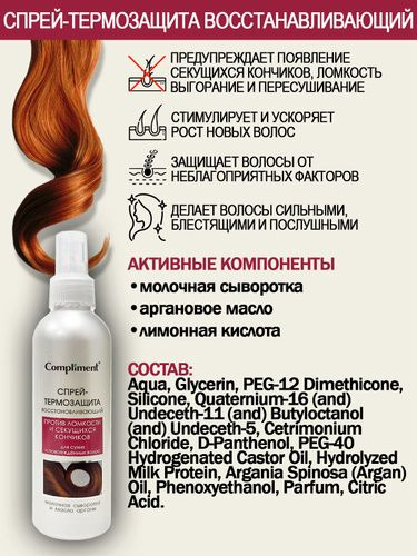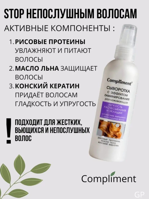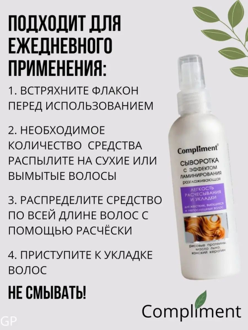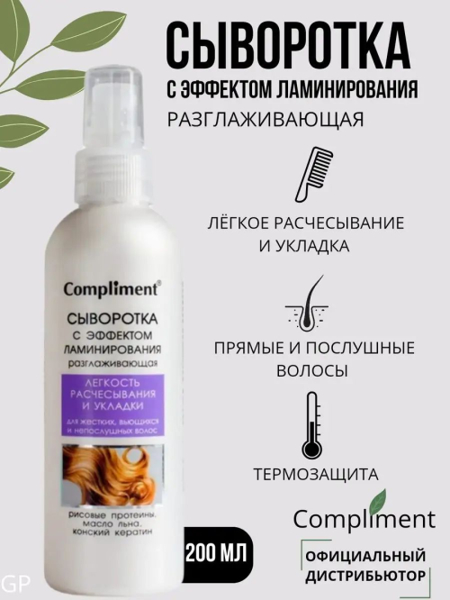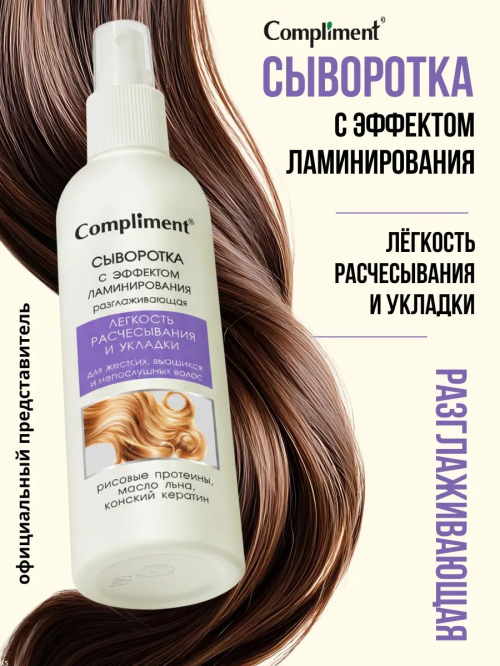 Разглаживающая спрей-сыворотка для волос с эффектом ламинирования от бренда Compliment