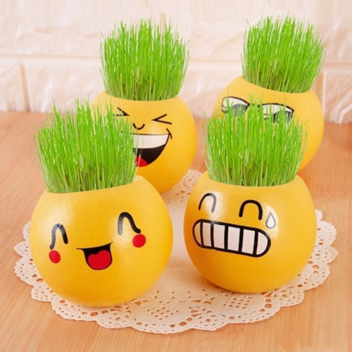 Дизайн: Горшочки выполнены в виде различных смайликов (эмодзи).
