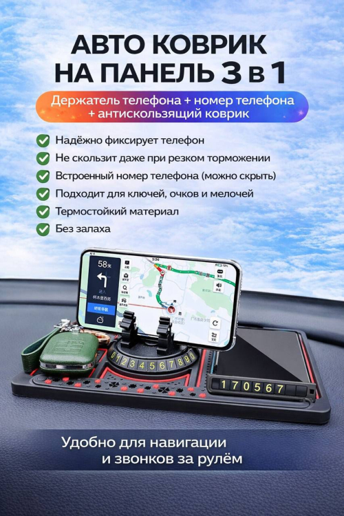 Подставка под автомобиль автомобильный коврик-держатель (антискользящий коврик) для приборной панели.