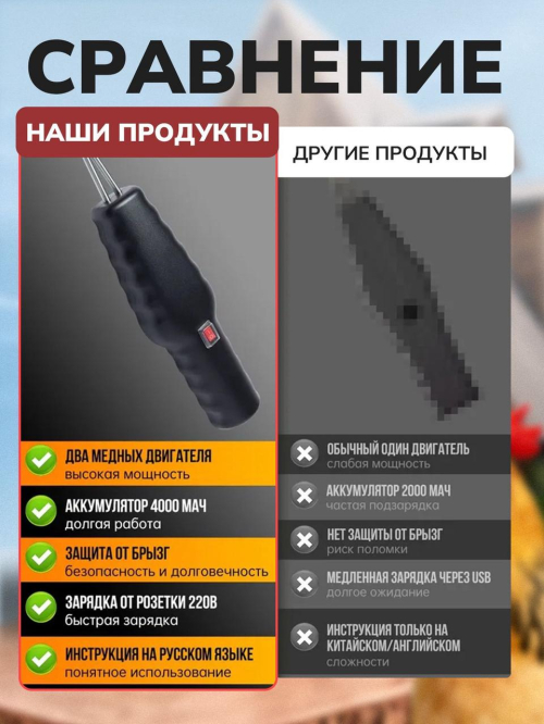 Назначение: Быстрое удаление мелких перьев, пуха и сосудистых волос у кур, уток, гусей и другой птицы.