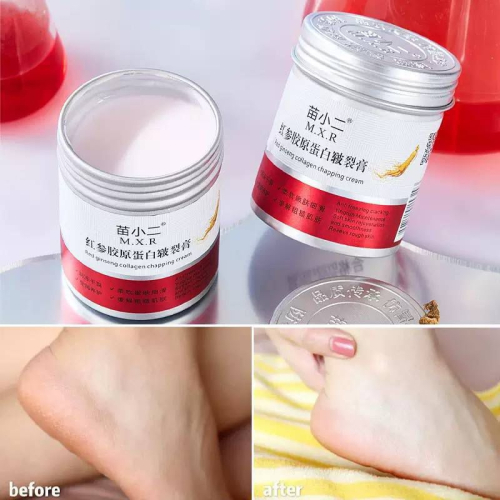 Восстанавливающий крем для пяток восстанавливающий крем для пяток M.X.R Red Ginseng Collagen Chapping Cream, предназначенный для питания и предотвращения трещин на сухой коже.
