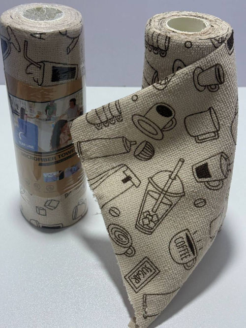 Тряпка Микрофибра Этот товар представляет собой рулонные салфетки из микрофибры с кухонным принтом.