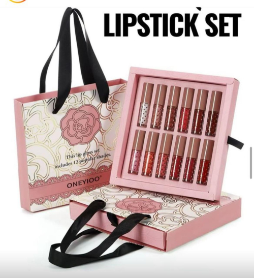 набор губных помад представляет собой косметический комплект бренда Oneyioo, состоящий из 12 оттенков жидкой помады в подарочной упаковке.
